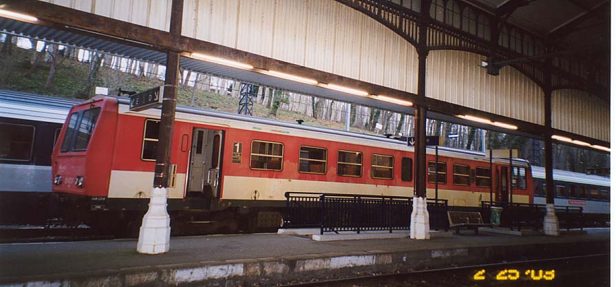 「REPERE」の目印の前で忠実に待っていても、列車は日本のように目印の前にピタリと停まることはなく、何メートルもずれて停まります。でも全員が降りて、全員が乗り切るまでドアが閉まることは無いので、皆ノンビリしたものです。日本の駅と違ってホームが低いので、列車に乗るにはちょっとよじ登る感じになります。トランクなんか持っていると大変、大抵周りの人が助けてくれますが。