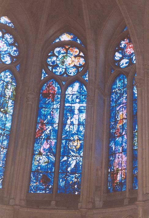 内部は静かなもので、有名なシャガール作のステンドグラスもゆっくり鑑賞できました。シャガールはロシアに生まれユダヤ人社会で育ったとのこと、独特の美しい色ガラスは13世紀の手法で作られているそうです。赤・青・緑の美しさ、感動的でした。