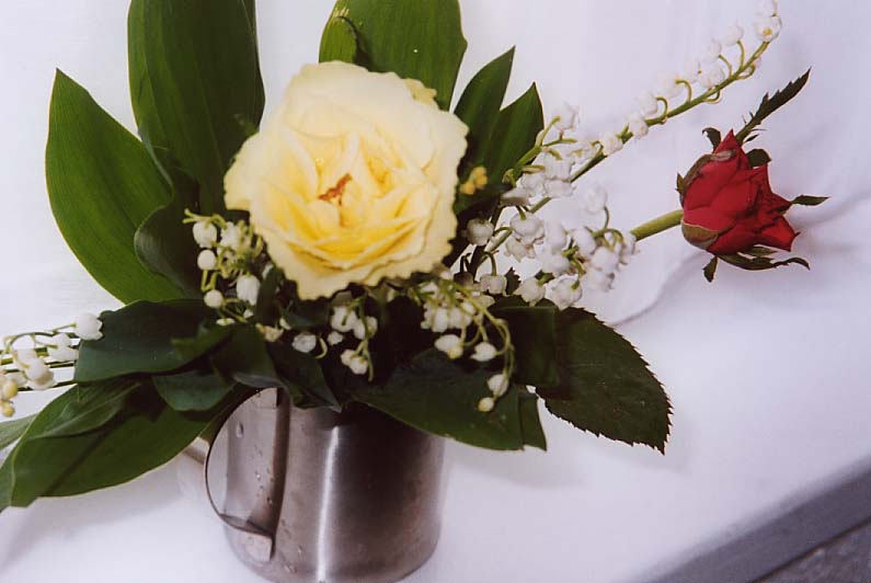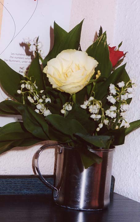 歩きつかれて駅まで戻ってくると、まだ鈴蘭を売っています。可愛い女の子に声を掛けられ、ついに一つ買いましたら、ホテルでも女性客にだけ、鈴蘭をくれました。鈴蘭だけでは寂しいと思ったのでしょうか、この日売っていた花束は大体バラと一緒になっていました。