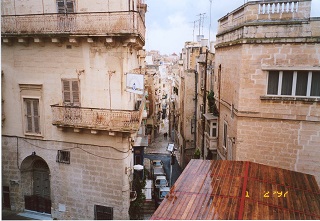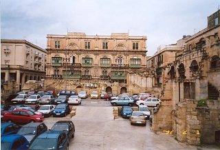 ドイツ国防軍の爆撃で破壊され外壁だけが 残っているバレッタのオペラ劇場跡今は 駐車場として使われている |