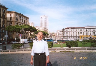英語グループ担当観光ガイド・マルゴさん ナポリ港岸壁にて |