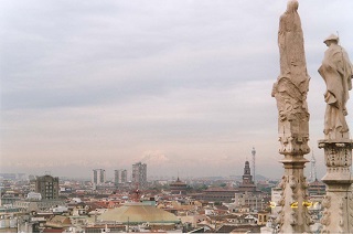 ドゥオモ大聖堂屋上より ミラノ市街とアルプスを望む |