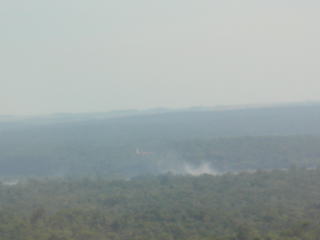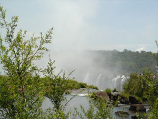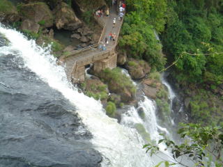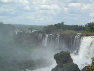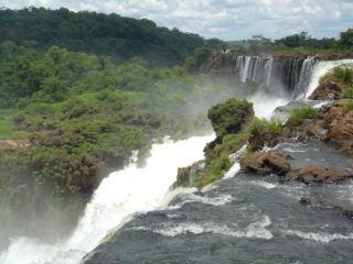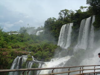 まずはトロッコ電車で「悪魔の喉笛」駅へ。沢山の蝶が舞っている。ここから木道を1000mほど通って大量の水が落ちる「悪魔の喉笛」へ。飛行機の着陸直前にも水煙が見えたが、木道からも滝つぼの水煙が見える。鵜のような水鳥も見える。