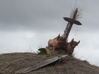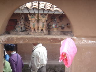 大きなパンが名物の村、インカの門、湿地に半分沈んでいるような瓦製造の村、金無垢の像のある教会、警察学校などを通過後、日本人にも使えるWCがある休憩所へ。