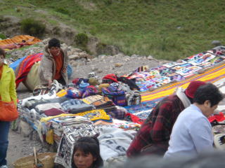 復路の車中では車掌さんが販売員、民族舞踊の踊り手、ファッションモデルにまで変身、ペルー名物のアルパカのセーターなどを売っていた。