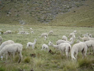ラ・ラヤ峠はクスコ県とプーノ県の境界、太平洋、大西洋の分水嶺で、正面には6420mのクルナラ山、周りはプーノ大学の研究牧場で、リャマが沢山放牧されている。