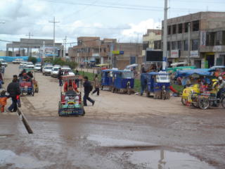 フリアカは飛行場もある大都市だが、ちゃんとした家は殆ど無し。土の家、道は泥んこ。工程中には三輪自転車のタクシーを沢山目撃した。