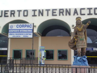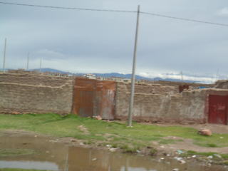 フリアカ空港着。空港名マンコカパックはインカの王の名。チチカカ湖観光に大勢が降りるフリアカだが、町は本当に日干しレンガの家ばかり、空港とのギャップが凄い。前日雨が降ったらしく、舗装していない地面は泥水で溢れ、見るに耐えない。