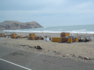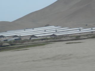 ペルーの海外線を南下。海辺には沢山の海水浴場の他、鶏の小屋が並ぶ。日本とは飼い方が違う。
