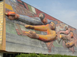 大学都市は学生だけで15万人もいるという大きなもので、図書館の壁は有名なフアン・オゴールマンの作品、中央の建物の壁はシュケイロス、スペイン語講座に何度か出た名前だ。