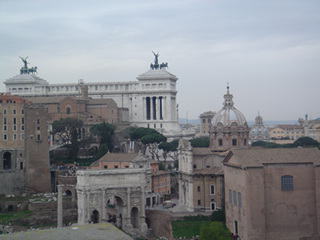 続いてフォロ・ロマーノへ。今日は曇天なので却って歩きやすい。まずはフォロ・ロマーノの全体が見渡せる丘の上へ。遠くにヴィットリオ・エマニュエレ2世記念堂やヴァチカンのドームまでが見える。