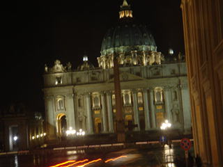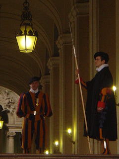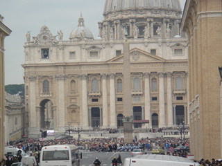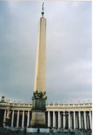 少々疲れた。外に出ると衛兵、さっき見た衛兵に比べ随分派手な服。どちらもスイス人の傭兵で、教養もさることながら長身・ハンサムと外見も大きな選考基準とか。広場には沢山の椅子が並べてある、明日は何か行事があるのかも。広場の真ん中に背の高いオベリスクが立っているが、大聖堂のドームは、これより高いとの事。