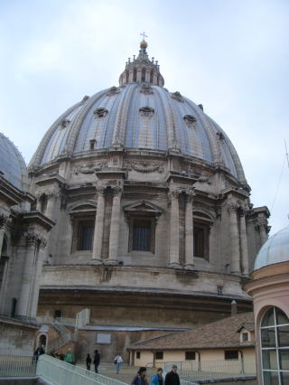 でも登りきった頂上からの景色は素晴らしいの一語。よく絵葉書になっている広場もよく見える。法皇様のお部屋も見える。裏へ廻るとヴァチカン市国の小さな敷地、綺麗に手入れされた庭が箱庭のよう。