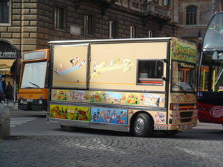 教会の前には店開き前のアイスクリーム屋の自動車が停まっていた。その傍に市内巡りの観光バスがいたので、ついウッカリ乗ってしまったが、これは目的のバスとは違い、経路が違うのでちょっと慌てた。