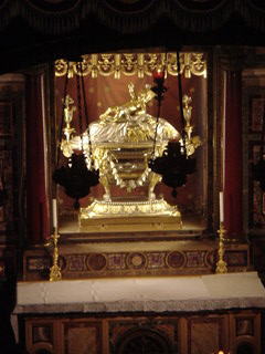 ここはローマの信仰の発祥の地とも言える場所で、ローマの教会の中では由緒深く駅にも近い割には、日本人には知られていない。今日は韓国から大団体が来て、聖遺物を前に礼拝をしていた。