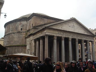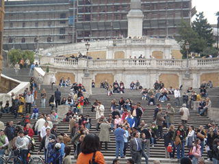 ヴェネチア広場、カンピドリオ広場、マッシモ劇場、シーザー暗殺現場、サンタンジェロ城、サンピエトロ広場は何か行事らしく法王さまの出御を待つ人が一杯、コロッセオ、チェルコマッシモ、カヴール像、ポポロ広場、途中で降りてトレビの泉、スペイン広場、首相府、パンテオン、一度ホテルへ戻って一休みの後、降り出した雨にも負けず、再度バスへ。 |