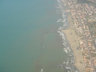 ヴェスビオ山が遠くに見える海岸で写真ストップの後ローマへ向かう。途中にはモンテカッシノ修道院が山頂に見える。第二次大戦の激戦地で徹底的に破壊されたそうだが、巡礼地でもあるので戦後再建されたとの事、公共バスで行く術はないらしいので、遠景で済ませる。ローマ近く、日没が綺麗だった。 |
