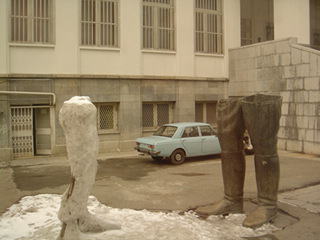 次は「白い宮殿」と呼ばれる建物。革命で追放されたパーレビー国王夫妻が住んでいた場所というが、何の変哲も無い質素な建物・・・入れなかったので内部は分からないが。建物の前には革命時に倒された国王の像の残骸。現在は足だけが残っているが、それだけでもどれほど大きかったかが判る。