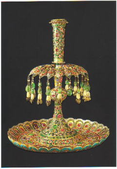 なるほど、こんな贅沢がこの世にあったかというほどの豪華宝飾品の数々、世界一大きいダイヤなどは序の口で、全面宝石で覆われた巨大地球儀、重そうな王冠沢山、宝石で覆われた椅子、ブローチに蝋燭立てまで宝石で作られているうえに、未使用の宝石がお皿の上に色別に積んである!!! 山盛り。