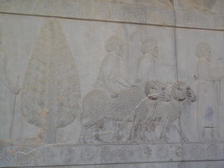 中心宮殿へ昇る階段の壁には数え切れないほどの人像が彫られており、これは全部ペルシャ人。階段には足が上がって登っている様子が描かれていて面白い。下りもあった。