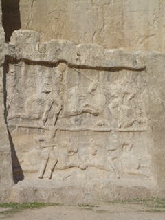 ![]() 墓は紀元前アケメネス朝だが、レリーフは3世紀〜のササン朝のもの。 上はペルシャ・シャプール王とローマ・ワレリアヌス皇帝の戦い |