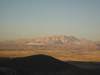 いよいよ空港へ向かう。テヘランに着いた最初の晩に見たアザディタワーで最後の記念撮影。町を囲む雪山が美しい。成田に着く直前には、これも美しさでは負けない富士山、旅の終わりを実感。 |