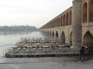 今日はイスラムに取っては平日。17世紀に建てられたハージュー橋へ。スイー・オーセ橋と同じく二層になっており、中央には王が夏に宴を張ったという風通しの良さそうなテラス。