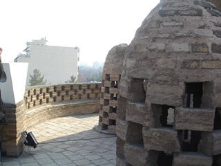 ヤズドの町は石の無い砂漠の真ん中なので、殆どが日干し煉瓦製。崩れそうな建物に本当に人が住んでいるのか? あちこちに風の塔が見られる。