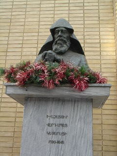 博物館の正面には二人の人物像、片方はアルメニアのアルファベットを作った人、もう一人は16世紀に印刷機を発明した人とのこと。