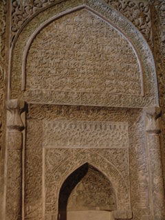 車を降りて入ったジャーメモスクの外観は美しいタイル張り。塔はイランで一番高いらしい。15世紀頃のものというが、高いところまでタイルがぎっしりで表面は滑らか、どうやって積んだのだろう。余りに細かくてじっくり見る気を無くしそうだが、このタイルの模様も変遷があって、幾何学模様だったのが唐草模様に変わるのが、このモスクが建てられた400年ほど前のことらしい。