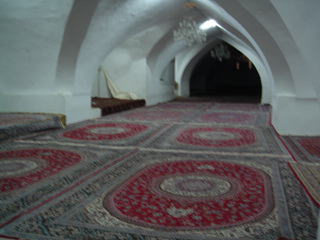 モスクの内部はいかにも古く、イヴァンと呼ばれる開口部が4つあるササン朝イラン様式という建て方とのこと。中庭には四角い台がある。演台、舞台として使われる他、カーバ神殿に模してメッカへ巡礼する時の予行演習の場所としても使われるとのこと。