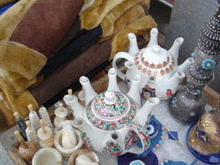イランの民芸品・芸術品として案内されたのは細密画。ラクダの骨に細い細い筆で絵を描くのだが、新聞にも出ている巨匠。私は作品を気に入ったが、巨匠はどうも他にも沢山居るらしい。