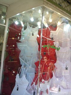 ウェディングドレスを売っている店も多かった。家族内では肌の露出もOKなのか、日本よりずっと大胆で派手。そういえば街行く女性達も黒い長着の下は凄く派手。前を通るのが恥ずかしいような強烈な下着屋もあった。しかも店番は全部オ・ト・コ。