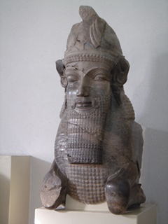 人面、有翼、獣の足の巨大な石像だ。人面が老人なのは「知恵」を表すという。