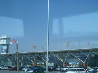空港の中央には、とてもおしゃれなカフェもありましたが、私たちは、一目で昨夜の残り物と判るお弁当持参、ごった返している構内で食べた人もいました。 9:00 広州発の飛行機でまず西安へ向かいます。西安では乗り換えの人も多いけれど私たちは座ったまま、と言われ、その前にトイレへ、と行きましたが、何としたことでしょう、水は出るけれど流れないトイレ、飛行機の中なのに・・・あ〜やっぱり中国だ。 西安では沢山の人が降りました。故郷へ帰るのでしょう、物凄い荷物を持って降りると、代わりにまた物凄い荷物を持った人が乗ってきました。 |