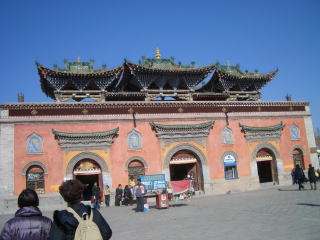 昼食後、まずタール寺へ。西寧は文化的にはチベットの一部と言えるところ、クンブムと呼ばれるこの街はチベット仏教最大のゲルグ派の始祖ツォンカバの出身地で、この寺もゲルグ派6大寺院のひとつ、ダライラマやパンチェンラマも滞在して勉強したことがある、広大なものです。またこのタール寺(クンブム寺)は、現在の14世ダライ・ラマ発見の大きな鍵となったお寺とのこと、ここから東へ「歩いて」二日の距離にあるタクツェルという農村が彼の生地とのことですが、彼が中国政府と対立している現在は、訪問には許可が必要とのことです。