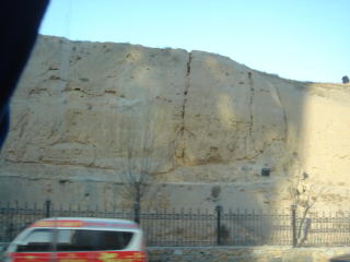 寺を出て町へ戻る時には、道沿いに高い厚い土壁が見られましたが、漢時代の城壁だそうです。
