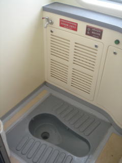 ![]() ↑空気吸入用のチューブ まだ綺麗なトイレ。真ん中上方が水道。ホースが欲しい。→ |