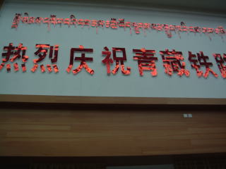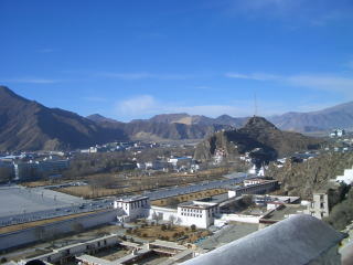 夜の10時半にラサ着。新しい駅なので驚くほど近代的。青蔵鉄道開通を祝う看板が派手に掲げられていました。チベット専門のガイドさんが出迎えてくれて、バスでホテルへ。 途中、ライトアップされたポタラ宮殿が見え、感激。 着いたのは、これまた信じられないくらい近代的なホテル、中国侵攻以来チベット色は段々薄れているとは聞いていましたが、中国色も薄い建物で少々がっかりでした。でもチベット、中国色丸出しでは私には耐えられないかも・・・。 |