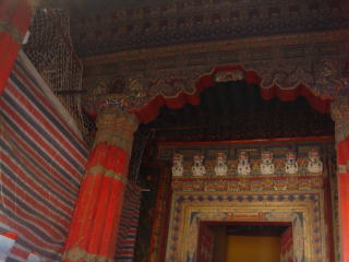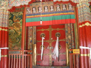 次は西蔵博物館。入り口は例のごとく綺麗な幕。中にはチベットの歴史遺物の他、民族衣装や祭りの道具など文化的な展示物が置かれていました。 昨日は年末のため予定していたジョカン寺に入れなかったため、代わりとして功徳林寺という18世紀の寺へ。 その後、高度4990mにあるヤムドク湖経由でツェタンへ向かいました。ヤムドク湖到着時、何と私は眠っていたのですねぇ・・・、今回の旅の目玉の一つだったのに見逃してしまいました。ポタラ宮殿で充分満足したからマ、いいか・・・。 |