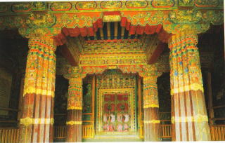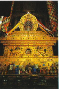 ![]() ←13世ダライラマの廟 上の網状になった所にミイラが安置されている |