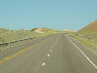 7月2日(月)またまた見渡す限りの大平原を行く。その先にあるのはインデペンデンスロック Independence Rock。なだらかに見えるけれど、掴まりどころが無いので少々恐ろしい。