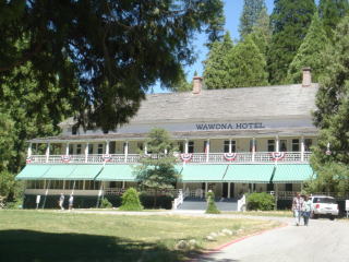 | 6月30日(土) (中)宿泊所から見た朝焼け (右)宿泊所ヨセミテロッジ |