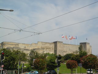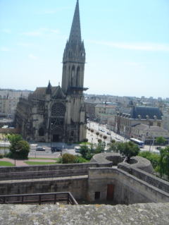 カーンは古い町で、フランスを代表する城下町。ノルマン公ウィリアムが建てた城・修道院・教会などがある。街中には木組みの家が沢山。教会の中部にも古い形式、鉄レースの仕切りが残っている。