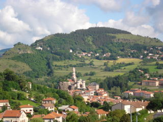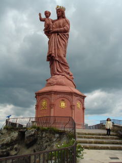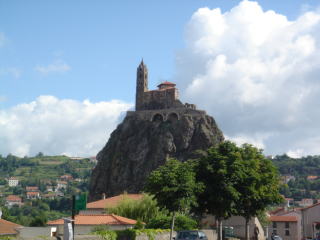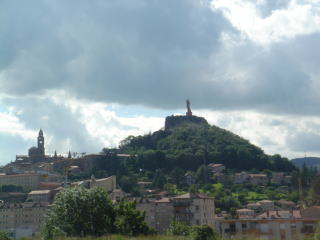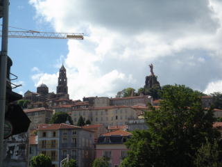 列車が町に近づくと、丘の上に「フランスの聖母」と呼ばれる赤いマリア像が見える。その下方にはサンミシェル教会、そして方向が変わるとノートルダム大聖堂も見える。この辺りは、平地が多いフランスには珍しく、溶岩が地中から突き出た丘が多い。巡礼地らしく街外れには聖ヨセフ像も見られる。