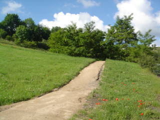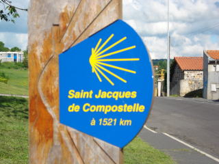 巡礼は街外れを行く。ここから目的地まで1521km! 標識が案外少ないので驚きだが、巡礼が次々とやって来る。
