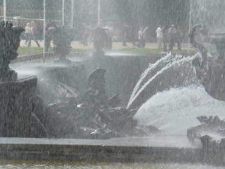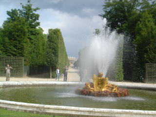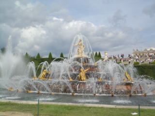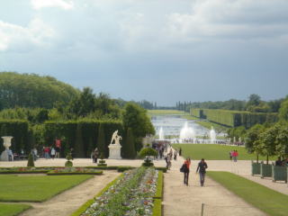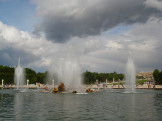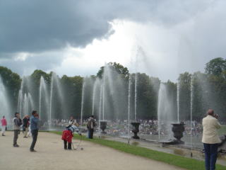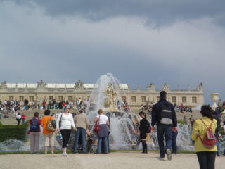 今日は一日・ヴェルサイユ宮殿観光。お定まりの鏡の間、前庭から運河を経て、プチトレインに乗ってマリーアントワネットが田舎風にしつらえたプチ・トリアノンへ。運河へ戻ってくると日曜だけの噴水ショーが始まっていた。