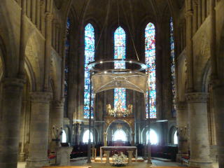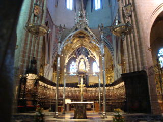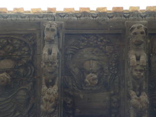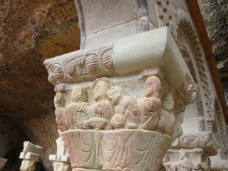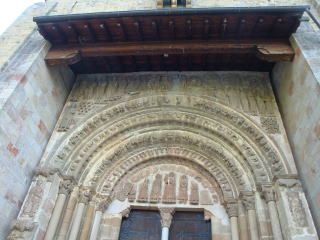 ![]() ↑ロマネスク独特の彫刻 右端が有名な首吊りユダ→ 内部は豪華→→ |