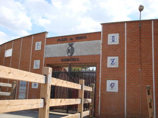 ![]() ↑闘牛場では、場外での牛追いのための柵が |