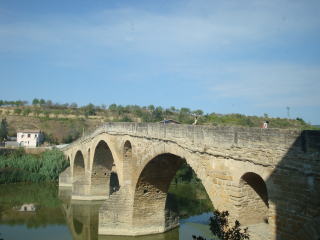 ・プエンテ・ラ・レイナ:フランス側からの二つのルートが合流する橋。貫禄の風景。